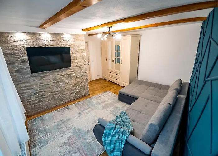 Die 55 m² große Ferienwohnung Mia House Brașov liegt einen 9-minütigen Spaziergang von der Weberbastei sowie der Seilstraße entfernt und bietet Blick auf die Berge.